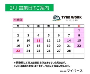 さて、26年2月の営業日を下記の通りご案内いたします。