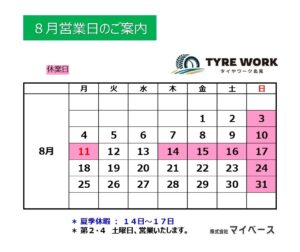 8月の営業日を以下の通り、ご案内いたします。